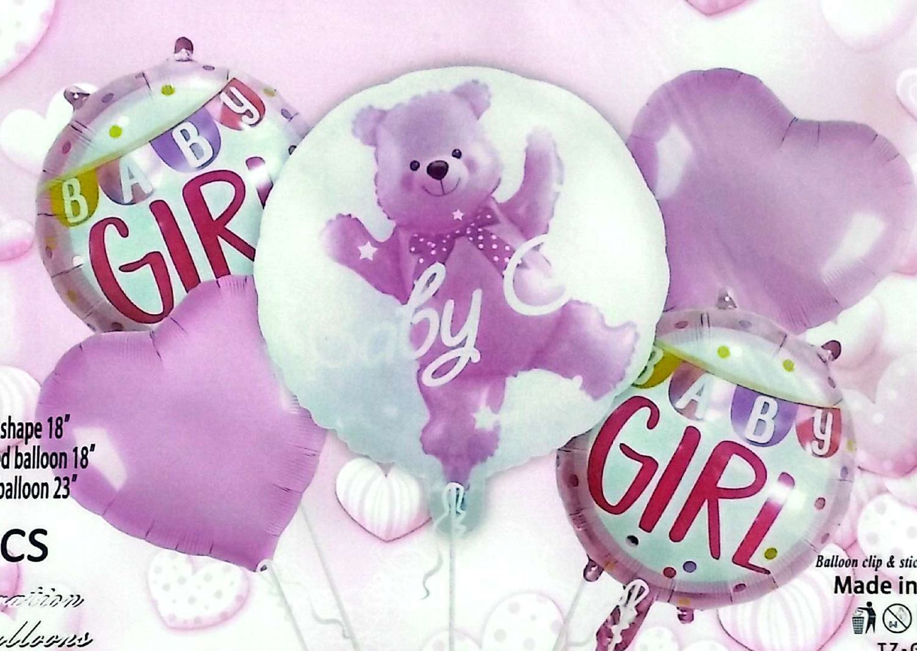 Baby Girl 5 Piece Foil Balloon Set 1 Piece Large 23 " Baby Girl , 2 Piece Printed Foil Balloon 18 ",2 Piece Star-Heat Shape Foil Balloons 18 ". Happy Birthday Party Decoration. Durable and High Quality Easy and convenient to inflate Creative and Lovely Design which is attractive and popular. Great for Birthday Celebrations and Baby Themed Party Material: Foil Pattern: Baby Girl Cartoon Foil Balloon Set Quantity: 5 Pcs .Perfect for birthdays, any party or special occasion